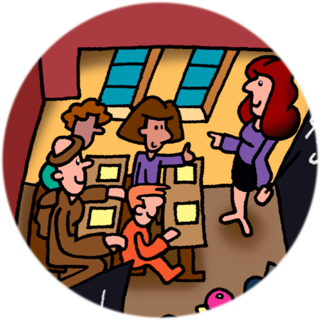 Derefter går minikonfirmanderne ”på opdagelse” i myldreplakaten, hvor munken Martin Luther er sat ind i ti forskellige livssammenhænge i dagens Danmark. Luthers placering danner da udgangspunkt for en samtale om, hvorfor han mon netop er der.